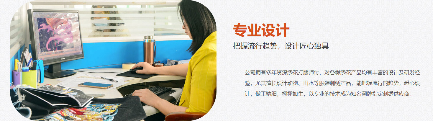 一、绣花章仔的概念 绣花章仔是一种工艺性和装饰性兼具的、符合绣花生产工艺要求和形式美法 则的、通过绣花手段来表现的纹样和色彩形式,通常用在服饰面料和家纺面料上。 二、绣花章仔的特点 1.适用性 绣花章仔的工艺性极强,纹样和色彩必须适用于电脑绣花的生产工艺。 唯有如此