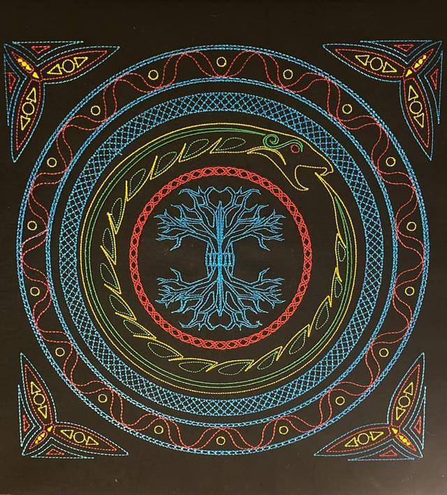 注:一些花版绣得比较稀疏,像平包针宽度超过0.9毫米以上的时候底下的走线可以隐约看出来,所以色差太大的线就不要埋在下面了,免得看上去不舒服,而且用剪刀也无法挖出来了!